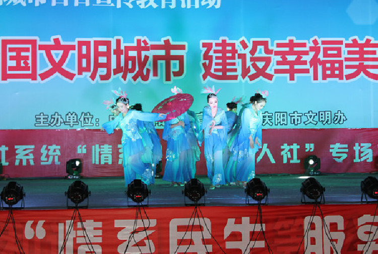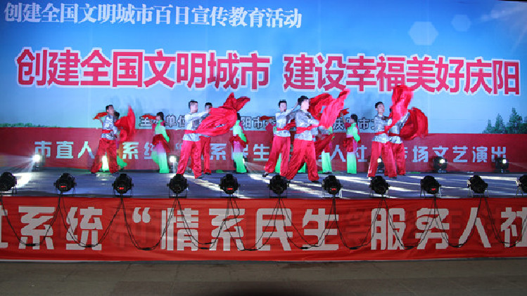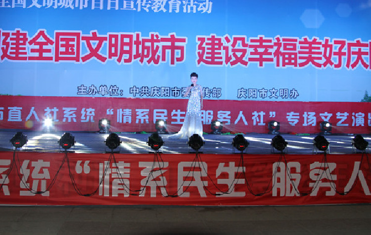 ????8月21日晚,“情系民生﹒服務(wù)人社”專場文藝晚會在西峰區(qū)和諧廣場隆重舉行。