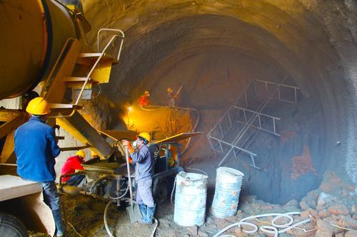 ????慶陽網(wǎng)訊(記者?尚曉偉)????11月7日,在銀西鐵路寧縣早勝三號隧道1#斜井施工現(xiàn)場,工人們正在噴錨。據(jù)悉,銀西高鐵兩端連接西安、銀川,全長約616公里,投資估算總額為604.6億元,設(shè)計時速250公里,銀川至西安客車運(yùn)行時間縮短至3小時以內(nèi)。