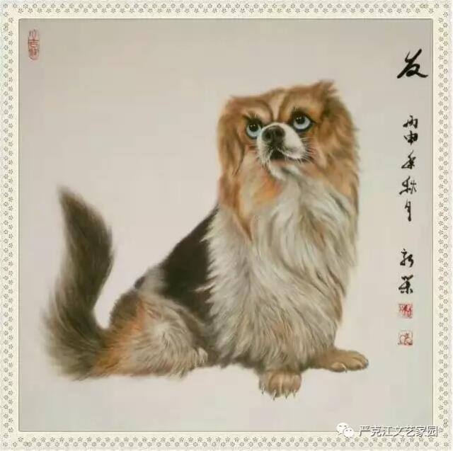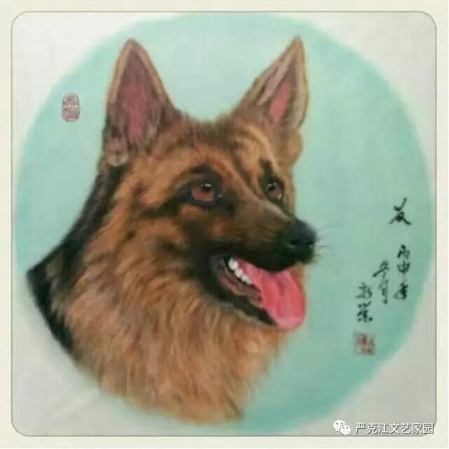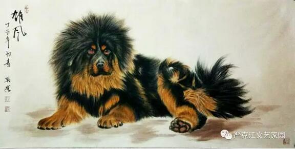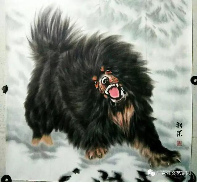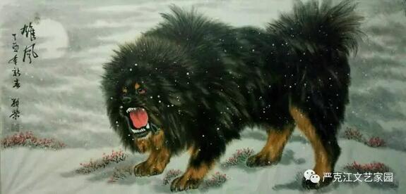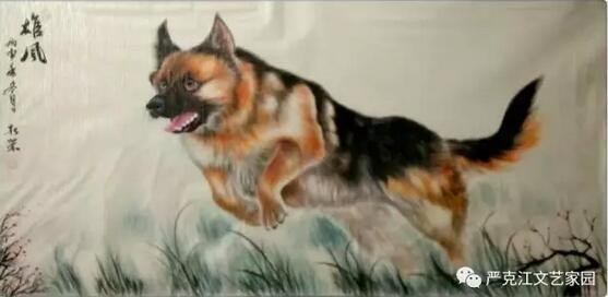 馬新榮這些年一直沉浸在藝術(shù)的創(chuàng)作之中,沉浸在精益求精的境界里,題材上,對(duì)牧羊犬的偏愛,以近癡迷狀態(tài)。他以最飽滿的熱情從生活中汲取營(yíng)養(yǎng),以敏銳的觀察力充實(shí)作品的內(nèi)涵,藝術(shù)上,虛實(shí)相生,筆簡(jiǎn)意繁,亦是不斷的探索與創(chuàng)新??芍^是蘸墨含情,調(diào)色用心。在淡化線條中深化意境,在突出形態(tài)的同時(shí)凸現(xiàn)神韻。有句行話說得好:“作畫妙在似與不似之間,太似為媚俗,不似為欺?!痹谶@一點(diǎn)和造型設(shè)計(jì)上,馬新榮也把控的恰到好處,做到了既不流于媚俗,也不狂怪欺世。