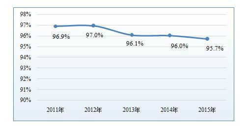 “十二五”期間通過工程教育專業(yè)認(rèn)證的工科專業(yè)畢業(yè)生一次就業(yè)率變化情況