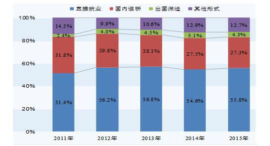 “十二五”期間通過工程教育專業(yè)認(rèn)證的工科專業(yè)畢業(yè)生就業(yè)去向變化趨勢