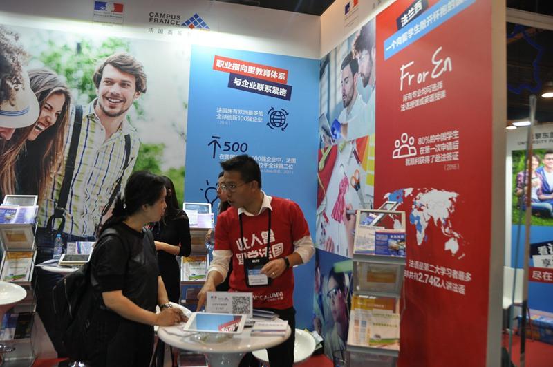 人民網(wǎng)北京10月23日電 ?近日,由中國教育國際交流協(xié)會(huì)主辦的2017中國國際教育展在北京國家會(huì)議中心開幕。來自加拿大、法國、德國、意大利、日本、英國和美國等近40個(gè)國家和地區(qū)的510余所海外院校參加展會(huì),向中國學(xué)生和家長介紹本國的招生現(xiàn)狀,并提供現(xiàn)場面試。