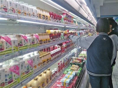 南大街一家超市負(fù)責(zé)冷飲貨架的銷售員向記者介紹,絕大部分酸奶的保質(zhì)期都不長(zhǎng),所以很多距離保質(zhì)期還有七八天的商品都會(huì)被進(jìn)行捆綁促銷。