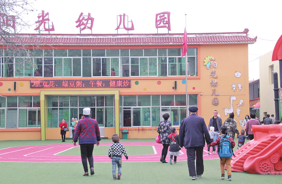 清晨,爺爺奶奶們送孫子孫女上學(xué)。