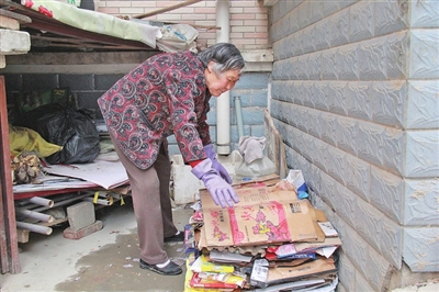 西峰區(qū)華宇名城一位隨子女進(jìn)城的老人以撿廢品消遣時(shí)間。