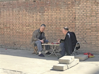 西峰區(qū)秦霸嶺東路某小區(qū)老年人下棋娛樂(lè)。