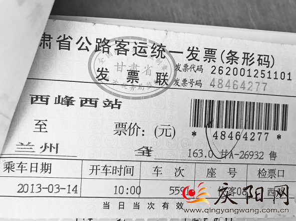 “營(yíng)改增”前,西峰汽車西站向乘客提供的、由地稅部門開具的甘肅省公路客運(yùn)統(tǒng)一發(fā)票。