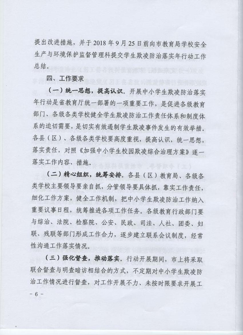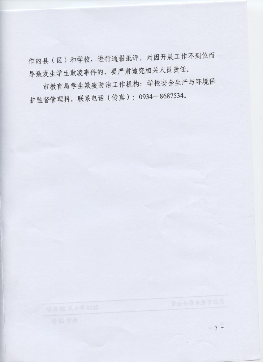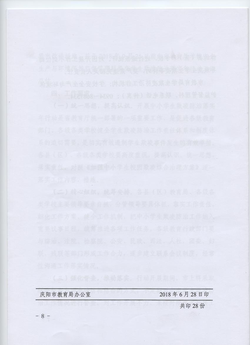 為全面貫徹落實教育部、省教育廳中小學生欺凌防治工作有關文件精神,切實防治中小學生欺凌現(xiàn)象,促進學生健康成長,構建平安、和諧校園,慶陽市教育局成立了防治學生欺凌工作機構,現(xiàn)將有關信息公布如下: