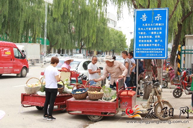 西峰區(qū)天禾蔬菜市場(chǎng)外幾名流動(dòng)商販占道經(jīng)營