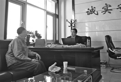 慶陽仲裁委員會交通事故仲裁中心工作人員調(diào)解一起交通事故糾紛。實(shí)習(xí)生 米靜 攝