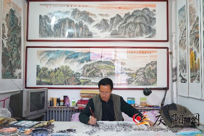 慶陽網(wǎng)訊(記者 李馨怡 實習(xí)生 路世玲)初冬時節(jié),從西峰區(qū)巴家咀水庫的山上望去,草木蕭蕭、水天一色。張軍峰巧手輕描、執(zhí)筆著色,不到1個小時,一幅美圖躍然紙上。