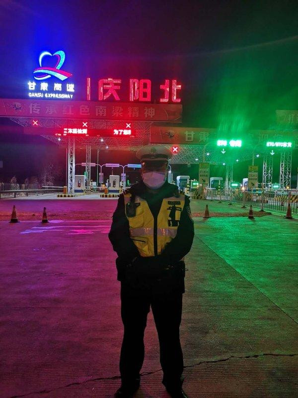 楊文杰在慶陽北高速出口執(zhí)勤(楊文杰提供)