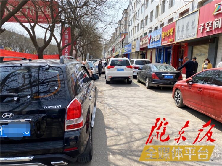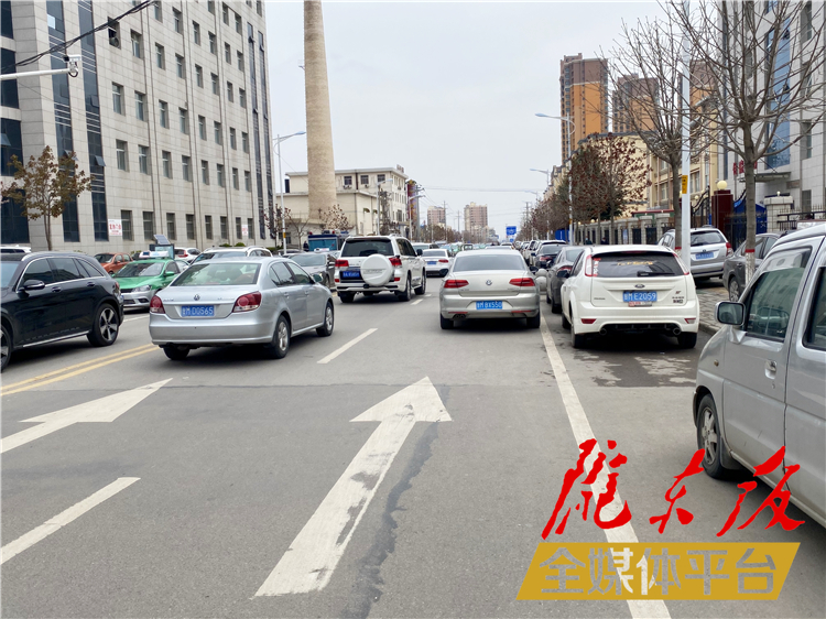 秦直東路市人民醫(yī)院住院三部旁,非機(jī)動(dòng)車(chē)道上停滿了車(chē)輛