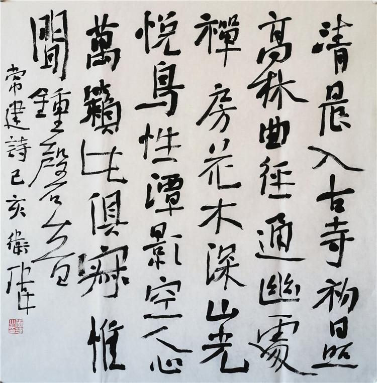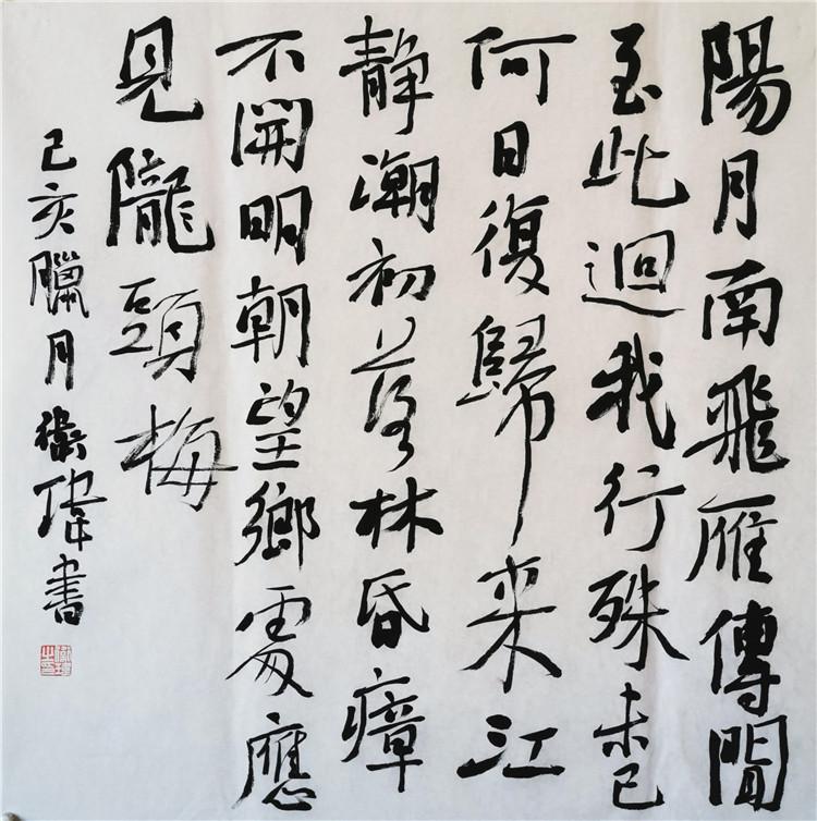 在書法院學(xué)習(xí)期間,萬力、李明、劉建國、李銳、田九亭、晏曉飛、衛(wèi)瑋和我一起聊書法,談創(chuàng)作,大家好古惜時(shí),趣尚相近,機(jī)緣相投,成立了“八面風(fēng)”。他們此時(shí)大都名聲在外,尤其是衛(wèi)瑋,二十出頭的年齡,數(shù)次參加全國展覽并獲獎(jiǎng),著實(shí)令我欽羨。書法院的學(xué)習(xí)結(jié)束后,衛(wèi)瑋回到了甘肅,書法創(chuàng)作不斷,捷報(bào)頻傳,可喜可賀。