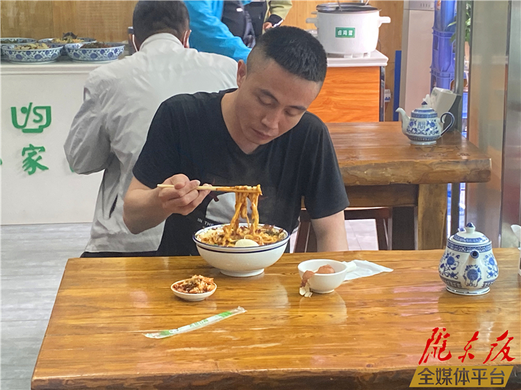 6月16日中午加班的付先生沒有回家,他來到解放東路一家面館,點了一碗自己愛吃的刀削牛肉雜醬面。和大多慶陽人一樣,付先生愛吃面,“在忙碌了一上午或者一下午后,買上一碗熱騰騰的面,感覺美得很!”付先生用手機付錢時告訴記者,大概年初的時候牛肉醬的刀削面由原來的12元漲到了14元。