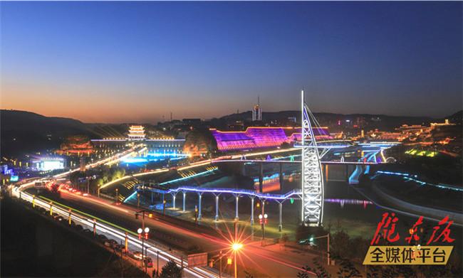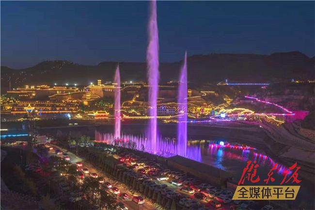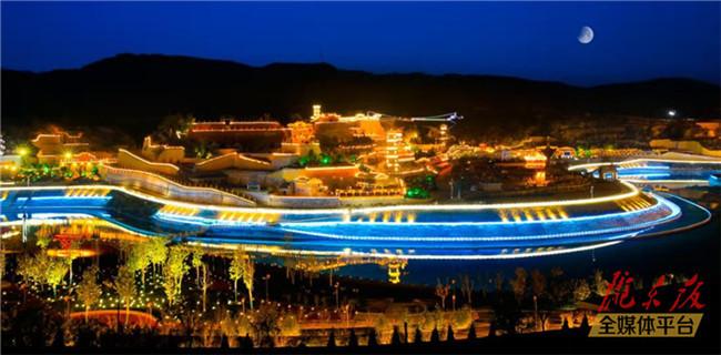 慶城縣藥王洞養(yǎng)生小鎮(zhèn)南門廣場夜景(2018年9月28日攝)。特約攝影?俄勝平?攝? ?