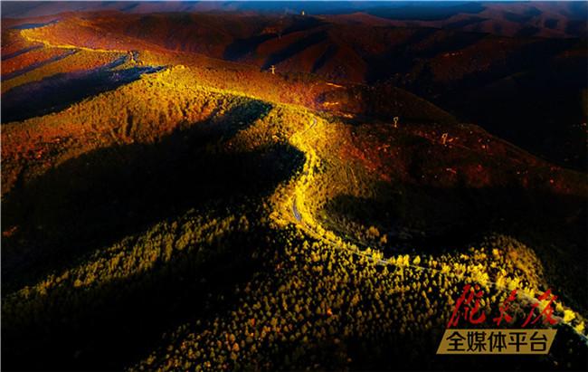 層林盡染的正寧縣調令關森林公園(2017年9月30日攝)。特約攝影?閆長科?攝??