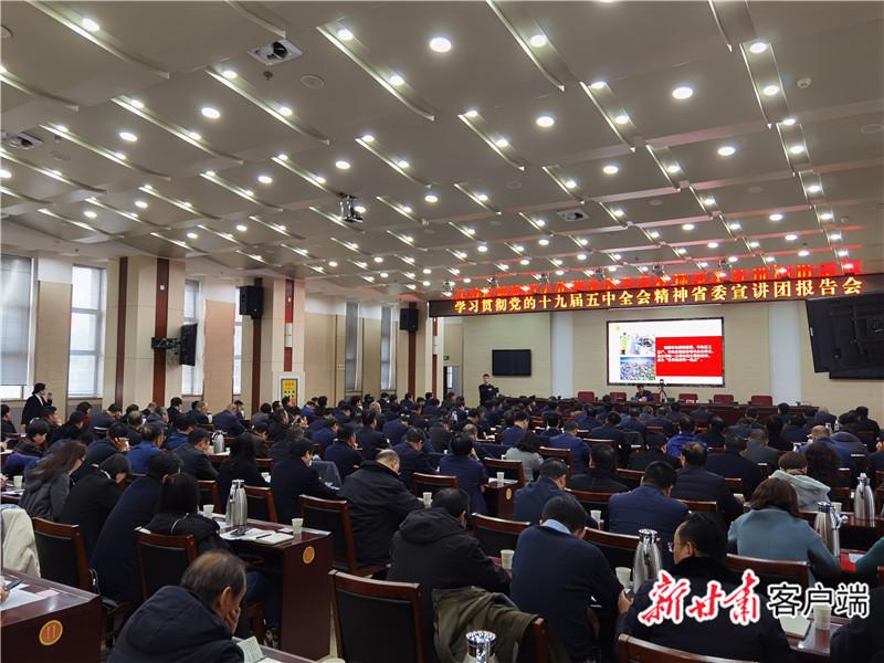 宣講中,蘇海明聚焦甘肅發(fā)展情況和慶陽老區(qū)實(shí)際,通過列數(shù)據(jù)、講事例、作比較,既展望未來、研判大勢(shì),又立足當(dāng)前、科學(xué)指導(dǎo),為慶陽市黨員干部作了一場(chǎng)精彩的全會(huì)精神輔導(dǎo)?!皥?bào)告內(nèi)容主題鮮明,系統(tǒng)全面,既上接‘天線’,又下接‘地氣’,對(duì)我們進(jìn)一步深入學(xué)習(xí)領(lǐng)會(huì)、貫徹落實(shí)全會(huì)精神提供了有力指導(dǎo)?!瘪雎爤?bào)告的人員表示,要做好全會(huì)精神的學(xué)習(xí)者,將全會(huì)精神學(xué)深學(xué)透、入腦入心;做好全會(huì)精神的宣傳者,推動(dòng)全會(huì)精神“傳”入千家萬戶、“播”進(jìn)田間地頭;做好全會(huì)精神的踐行者,將全會(huì)精神轉(zhuǎn)化為推動(dòng)工作、指導(dǎo)實(shí)踐的強(qiáng)大動(dòng)能。