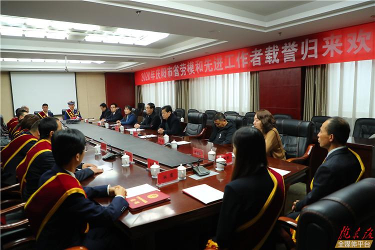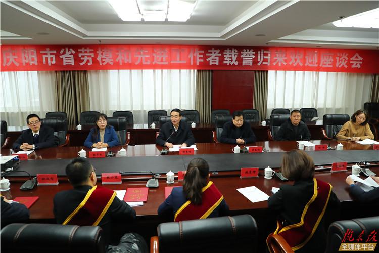 慶陽網(wǎng)訊(記者 陳飛)12月8日,我市受表彰的13名甘肅省勞動模范和先進工作者載譽歸來。市人大常委會副主任、市總工會主席郭光能出席歡迎座談會并講話。