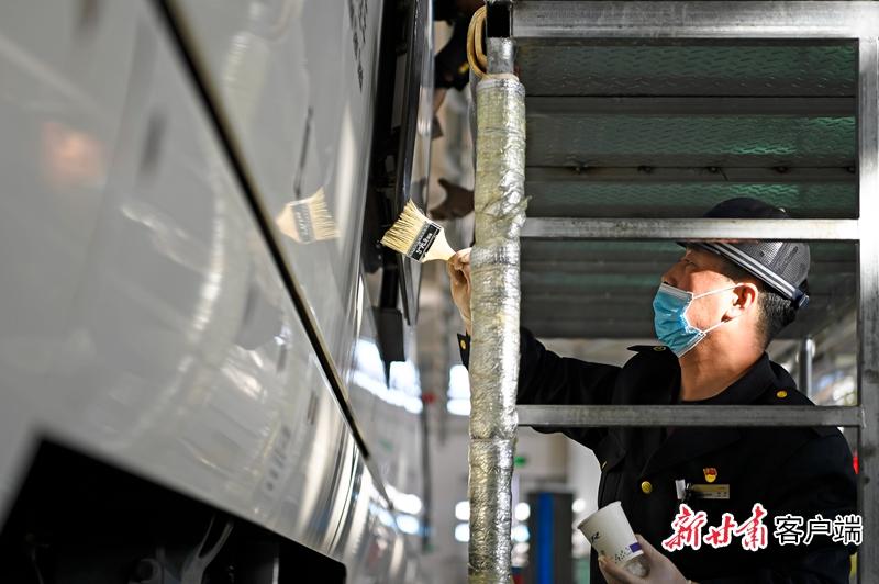 銀川動車運用所技術(shù)工正在對車門進行保養(yǎng)。