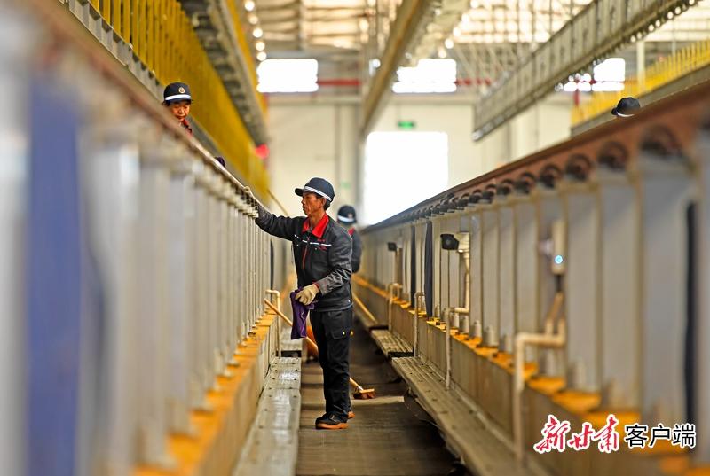 銀川動車運用所清潔工人正在對保養(yǎng)檢修軌道進行清潔。