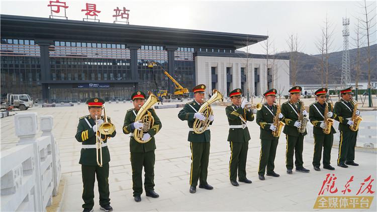 ????慶陽網(wǎng)訊(記者 路世玲 李建強(qiáng))身著軍裝、頭戴軍帽、一字隊(duì)列;長號洪亮輝煌、大號渾厚低沉、小號明朗響亮、薩克斯美妙多變……12月18日下午,在銀西高鐵寧縣站站前廣場,八名社會樂團(tuán)成員自發(fā)演奏的《歡迎進(jìn)行曲》《走向復(fù)興》《咱當(dāng)兵的人》曲目,引來周圍群眾或駐足觀看,或用手機(jī)記錄,優(yōu)美激昂的樂曲飄蕩在整個(gè)寧縣站上空。