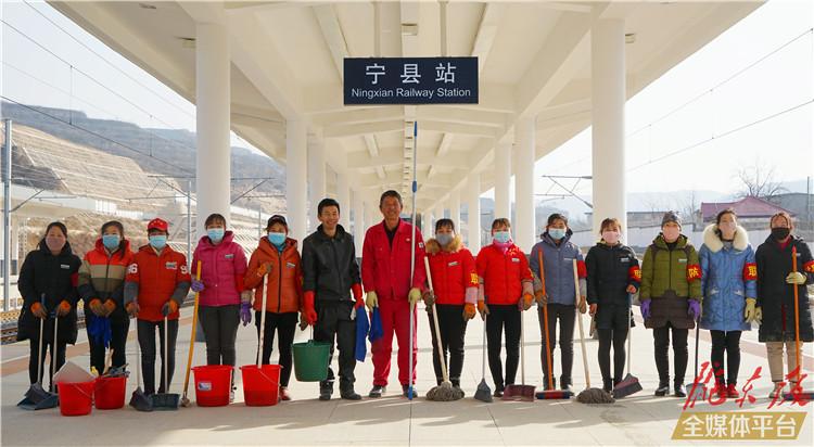 ????慶陽網(wǎng)訊(記者 路世玲) “來,姐妹們,咱們動作麻利點,把活干得漂亮些?!?2月17日,在銀西高鐵寧縣站4號站臺,一名中等身材、容貌清秀的女子帶領(lǐng)著七八個女保潔員用清潔工具正在認(rèn)真地擦拭和打掃站臺黃色候車區(qū)域衛(wèi)生。