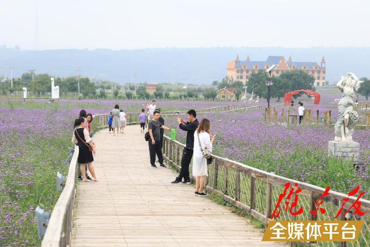 游客在薰衣草莊園拍照游玩。本報記者 黃飛 攝