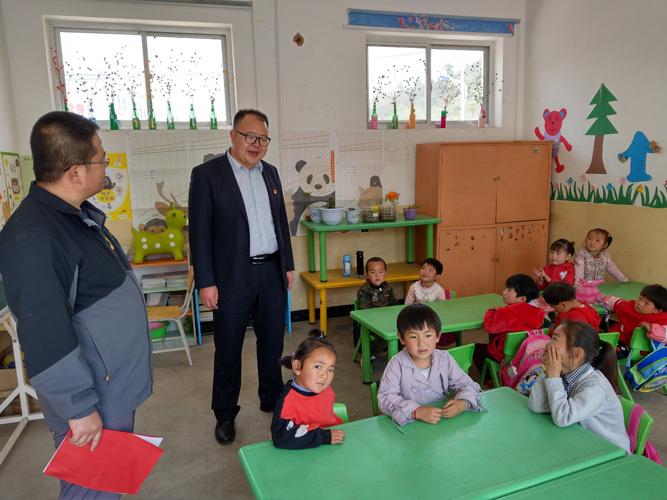 2019年5月9日,邱軍在華池縣城壕鎮(zhèn)太陽(yáng)幼兒園了解幼兒園辦學(xué)情況。