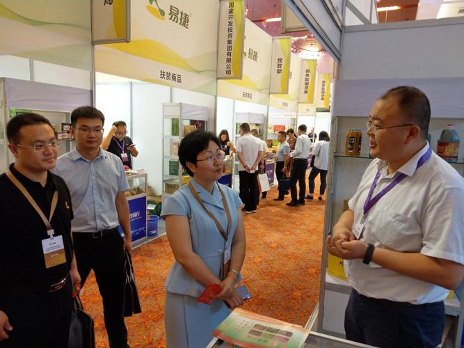 2019年9月10日,邱軍在易捷扶貧展銷會(huì)上推介華池農(nóng)特產(chǎn)品。