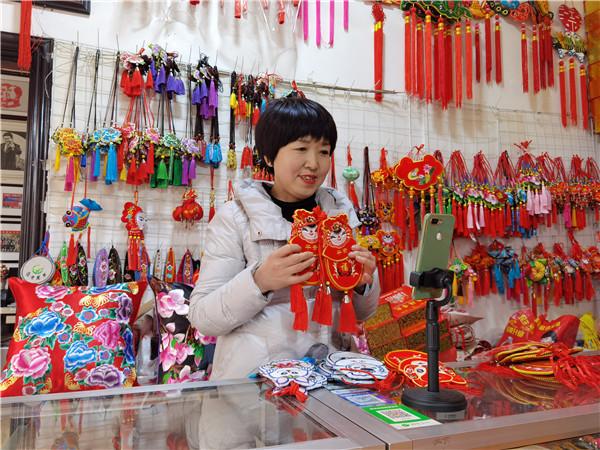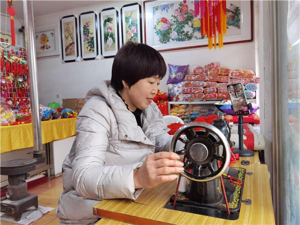 趙麗珺的想法得到了家人的一致贊同。架起手機、打好燈光,趙麗珺的刺繡門店瞬間變成了直播間。直播中,趙麗珺介紹各式各樣的刺繡工藝品,還現(xiàn)場進行了刺繡展示,向網(wǎng)友講述刺繡的針法技藝等。