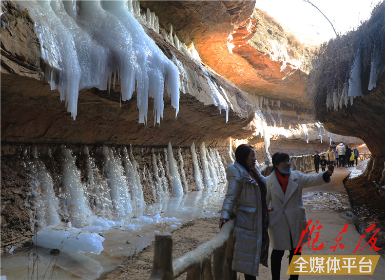 ????慶陽(yáng)網(wǎng)訊(見習(xí)記者 曹拯 實(shí)習(xí)生 帳篷)1月14日,進(jìn)入寒冬臘月,西峰區(qū)黑老鍋景區(qū)迎來旅游季。黑老鍋冰窟位于慶陽(yáng)市西峰區(qū)顯勝鄉(xiāng)毛寺村,這里冰窟地貌奇異,兩邊山勢(shì)呈峽谷狀,最后連接一線,仿佛天地渾然一體,尤其冬季,景區(qū)地表水從冰窟崖石匯流而下,形成各種造型獨(dú)特的天然冰柱群,蔚為壯觀。