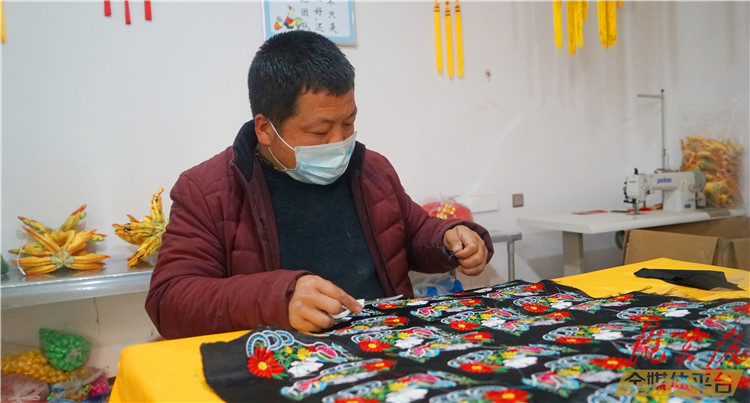 ????臨近春節(jié),客戶青睞的十二生肖香包正在車間里緊張制作。今年,郭海峰希望研發(fā)更多的刺繡新品,增加男性職工工種,通過自己的企業(yè),真正實現(xiàn)“就業(yè)一人 脫貧一家”。