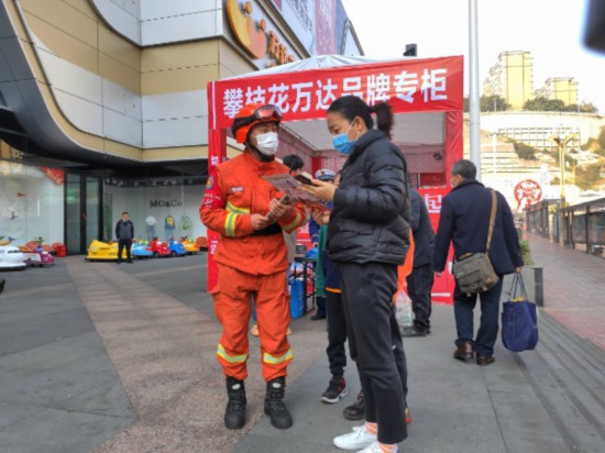 吃過早飯,消防員郭鵬就連忙帶領班級人員調(diào)試好滅火裝備,準備好防火宣傳用品。他們今天的任務是前往攀枝花市萬達廣場開展防火宣傳。