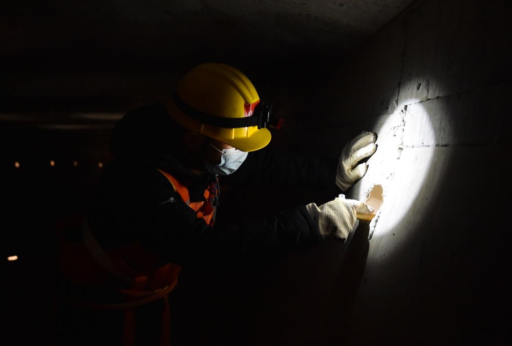 伴隨著梁體內(nèi)高鐵呼嘯而過的回音,申源和工友們一邊走一邊敲。根據(jù)經(jīng)驗,申源可以很輕松地通過敲擊聲檢測混凝土的密實度,從而判斷梁體內(nèi)是否有“病害”。申源說,春運高峰期,加班加點都是常有的事,“及時檢查出梁體是否有裂縫,是否有異物,才能有效避免事故,讓旅客更安心”。