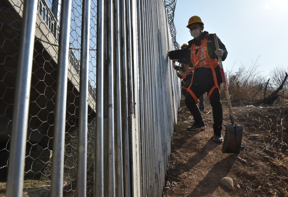 2月9日,在鄭太高鐵太焦段的白北隧道附近,作業(yè)人員在檢測線路防護(hù)柵欄是否松動。新華社記者柴婷 攝