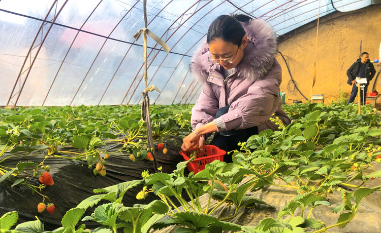 “每年收入大概8萬元左右,去年前半年,蔬菜賣了3萬多元。草莓是1月份開園的,雖然今年的草莓沒有往年的個頭大,但效益還可以,從開園到現(xiàn)在賣了將近5萬元?!焙瘟终f。