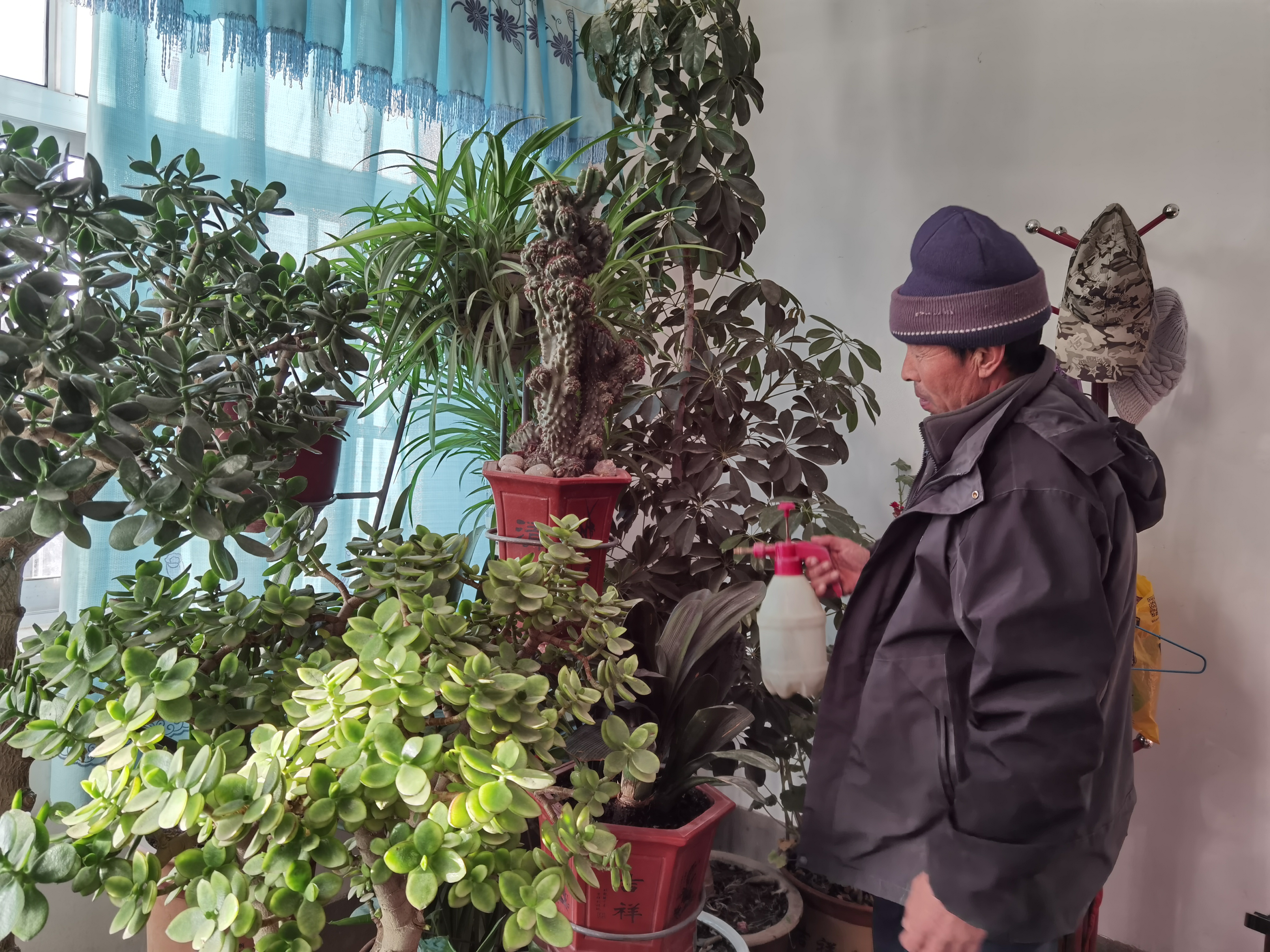此外,他還打造了一處“秘密花園”,房間里擺放著數(shù)十盆花,1米多高的金錢樹、四季常青的鵝掌柴、剛出花苞的君子蘭、枝繁葉茂的吊籃、紅花點(diǎn)綴的繡球,一派生機(jī)勃勃。