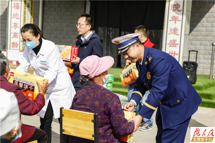 志愿者在董志敬老院為老人送上慰問(wèn)品。