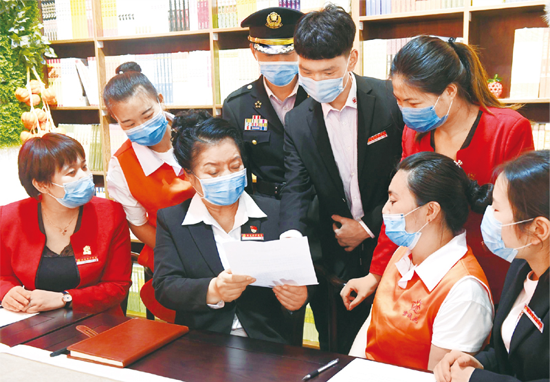 圓方集團(tuán)是河南省鄭州市一家綜合服務(wù)型民營企業(yè),現(xiàn)有員工6萬人,其中黨員500多名。2020年,黨的十九大代表、圓方集團(tuán)黨委書記薛榮給習(xí)近平總書記寫信,代表全體職工匯報了堅守本職崗位、積極參與抗疫的情況,表達(dá)了共擔(dān)責(zé)任、共克時艱的決心。圖為集團(tuán)員工在學(xué)習(xí)習(xí)近平總書記2020年4月30日的回信?!∪珖h建研究會供圖 周甬/攝
