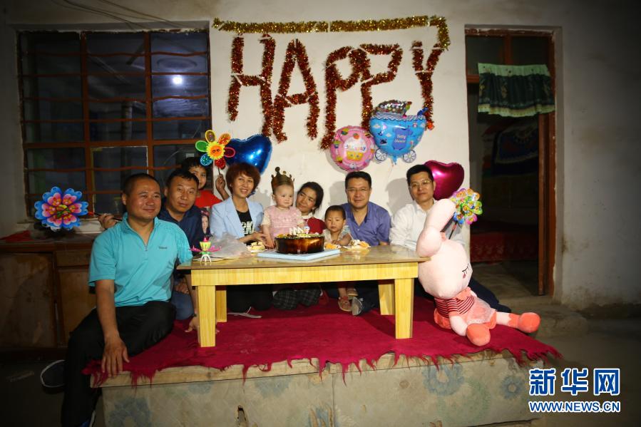 席世明(左二)和其他援疆干部一同給維吾爾族小姑娘“小石榴”過生日(資料照片)。新華社發(fā)