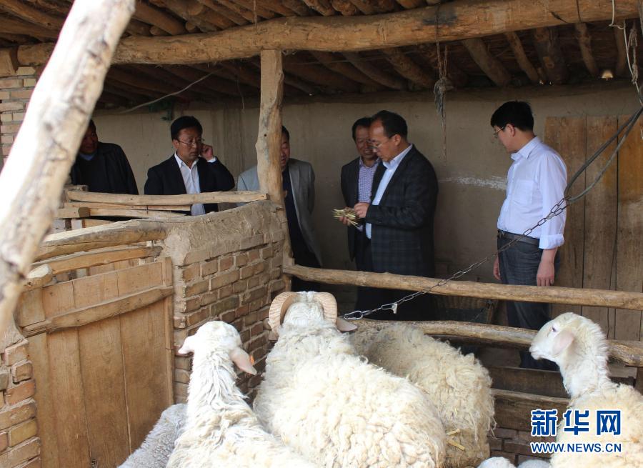 柴生芳(右二)在甘肅省臨洮縣八里鋪鎮(zhèn)檢查畜牧養(yǎng)殖合作社發(fā)展情況(資料照片)。新華社發(fā)