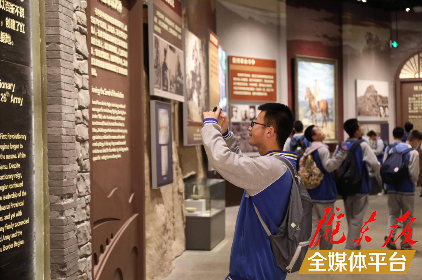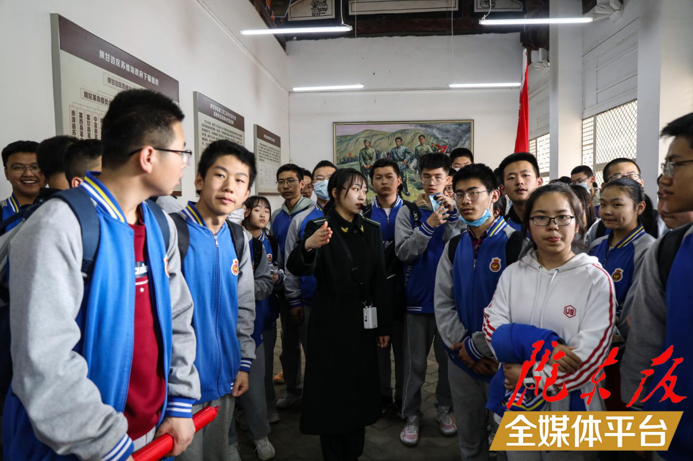 學(xué)生在講解員帶領(lǐng)下參觀南梁革命紀(jì)念館。