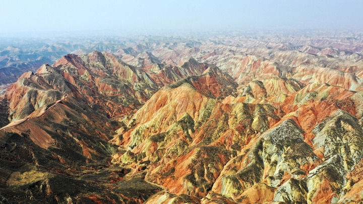 這是4月5日拍攝的蘭州水墨丹霞景區(qū)(無人機(jī)照片)。新華社記者 陳斌 攝