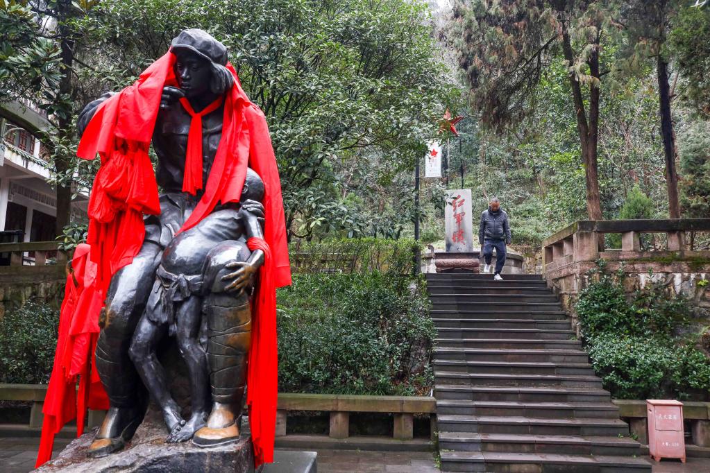 這是遵義紅軍烈士陵園內(nèi)的紅軍衛(wèi)生員雕像(1月25日攝)。新華社記者歐東衢攝