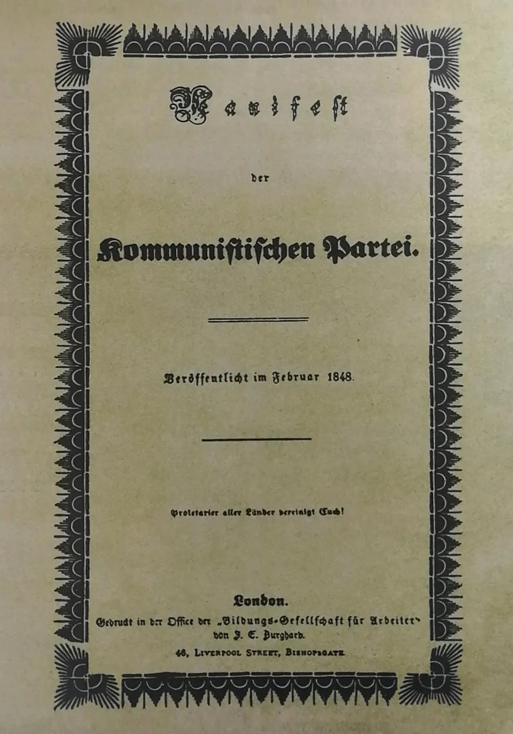 1848年2月《共產(chǎn)黨宣言》德文倫敦首版封面
