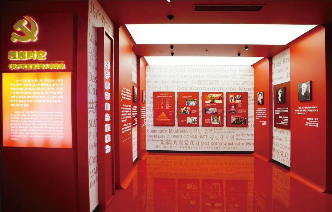 《共產(chǎn)黨宣言》第一次全面闡述了科學(xué)社會(huì)主義原理,“向全世界公開說明自己的觀點(diǎn)、自己的目的、自己的意圖”,矗立起一座馬克思主義的精神豐碑。情境教學(xué)館以時(shí)間為線索,不僅呈現(xiàn)《共產(chǎn)黨宣言》的文本內(nèi)容,而且關(guān)聯(lián)科學(xué)思想的偉大實(shí)踐,立體展示《共產(chǎn)黨宣言》所蘊(yùn)含的真理力量。