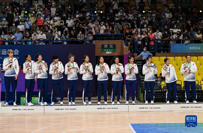 當(dāng)日,在西安舉行的第十四屆全運(yùn)會(huì)五人制籃球女子成年組決賽中,聯(lián)合隊(duì)以100比52戰(zhàn)勝江蘇隊(duì),獲得金牌,江蘇隊(duì)和廣東隊(duì)分獲銀牌和銅牌。