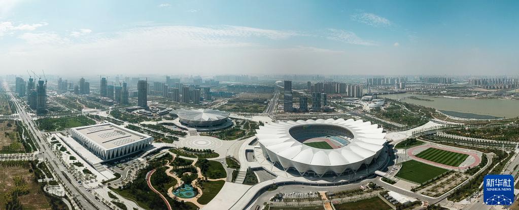 這是2021年5月22日拍攝的第十四屆全運會主場館西安奧體中心(無人機(jī)照片)。新華社發(fā)
