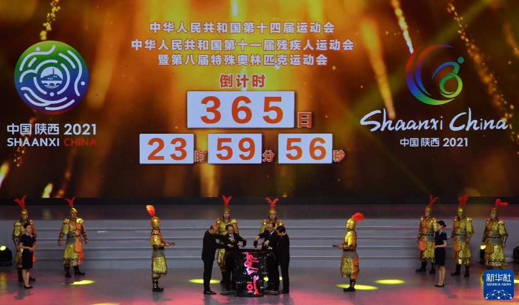 2020年9月15日,第十四屆全運會迎來倒計時一周年。這是9月15日在西安奧體中心體育館拍攝的中華人民共和國第十四屆運動會倒計時一周年活動現(xiàn)場。新華社記者李一博攝